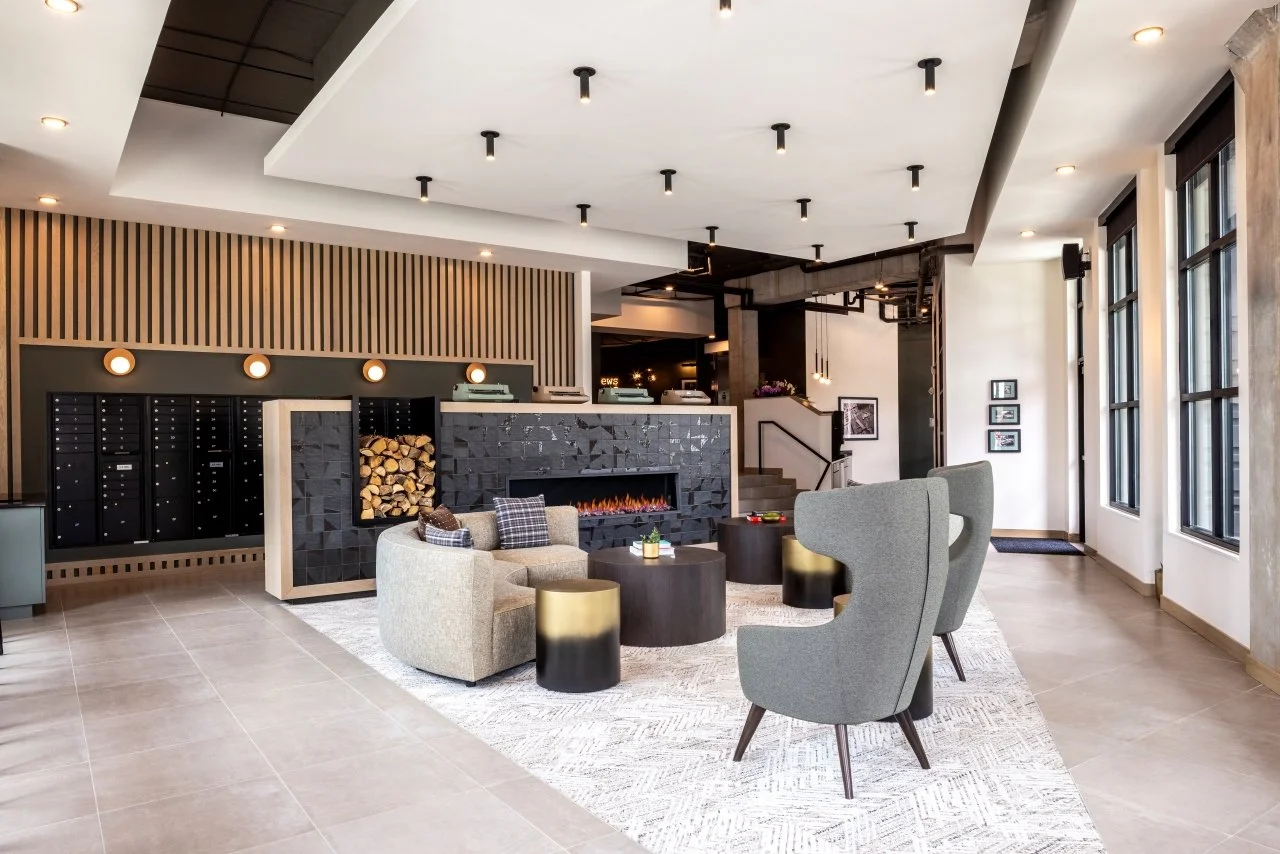 The residence brings 84 new families to the main street of downtown—supporting local shops and restaurants—and live/work units on the first floor are cues to the past. The convenient location, anchoring the growing and revitalized Main Street, offers ample amenities and prioritizes community building both within the building and the neighborhood. Shared spaces are focused towards the historic downtown, allowing tenants to participate in many of the city’s activities, like the continuously run car show, gathering hundreds of locals weekly for more than 30 years.